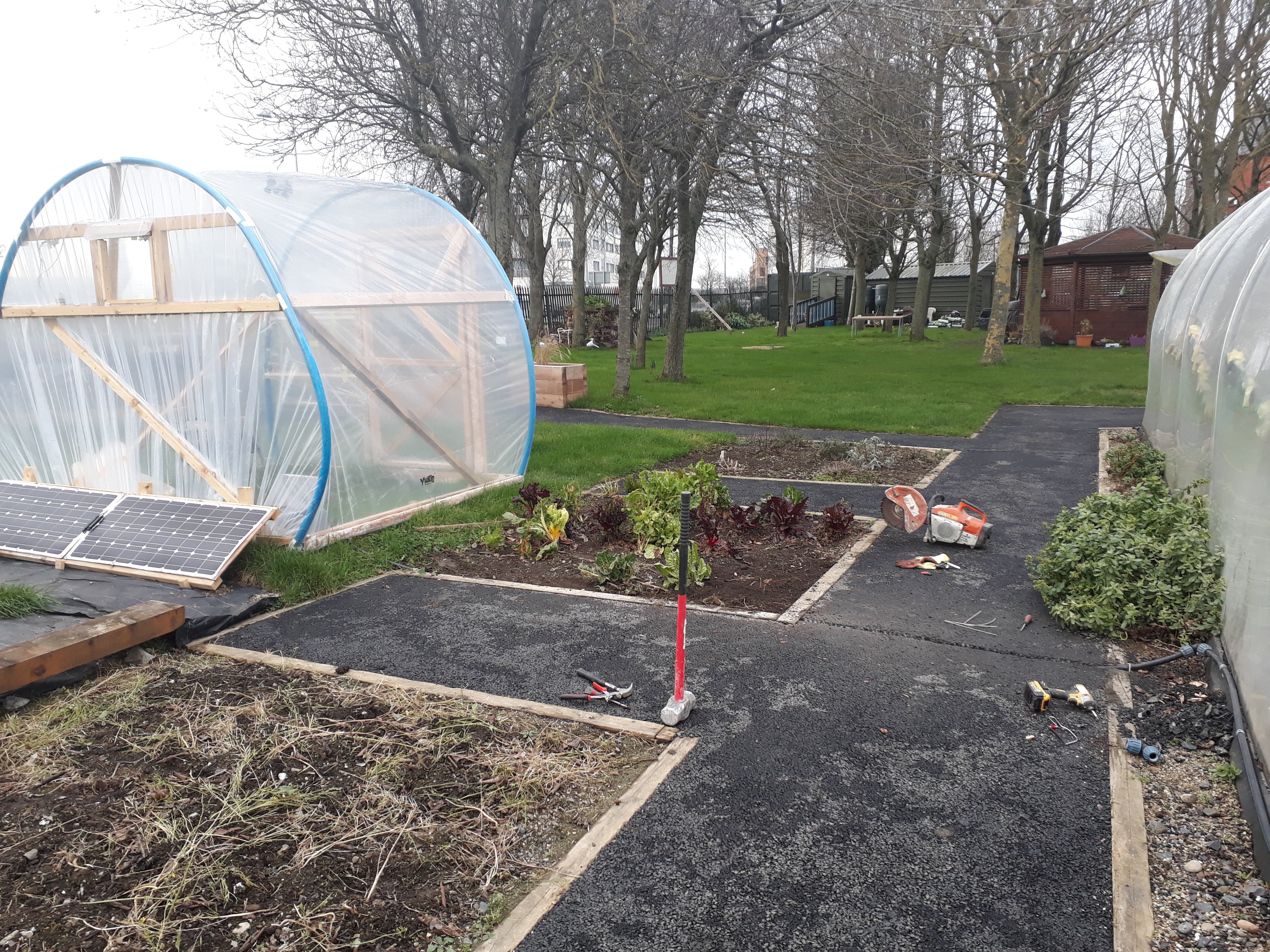 Irrigation system and raised bed finished at Muck & Magic, Ballymun